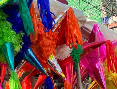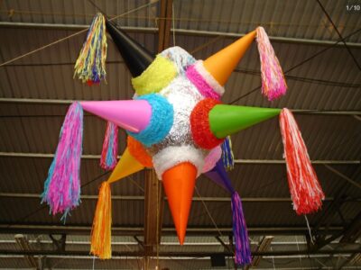 On dit que… Les piñatas à sept pointes symbolisent les sept péchés capitaux : la paresse, l’envie, la gourmandise, la colère, la luxure, l’avarice et l’orgueil, enveloppés de couleurs vives et de guirlandes qui symbolisent la vanité et les tentations terrestres. Pour mettre fin à ces tentations, on utilise un bâton pour essayer de la briser, car la briser simule la force avec laquelle le mal est vaincu et le mensonge et la tromperie sont détruits. C’est pourquoi l’intérieur est rempli de bonbons et de fruits… la récompense pour avoir vaincu le mal… 🎶Je ne veux pas d’or, je ne veux pas d’argent, ce que je veux, c’est briser la piñata🎶 🎶Frappe-la, frappe-la, frappe, ne perds pas ta cible, car si tu la perds, tu perds ton chemin…