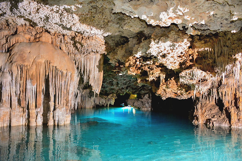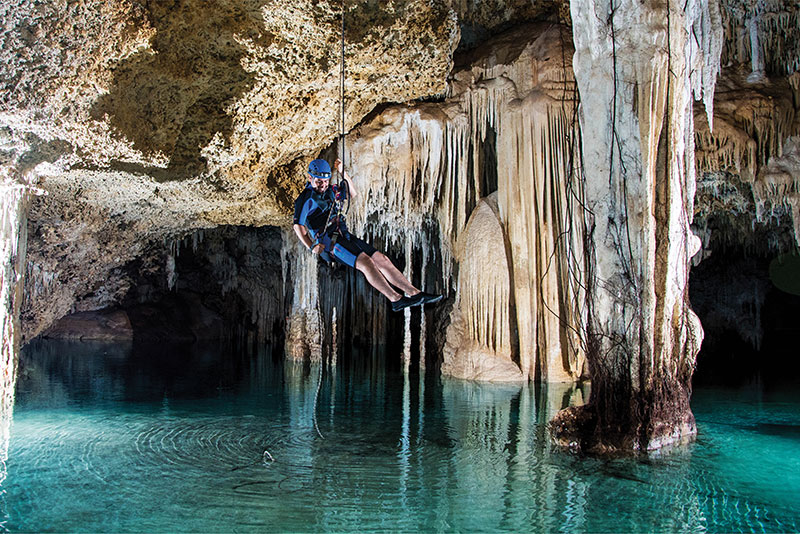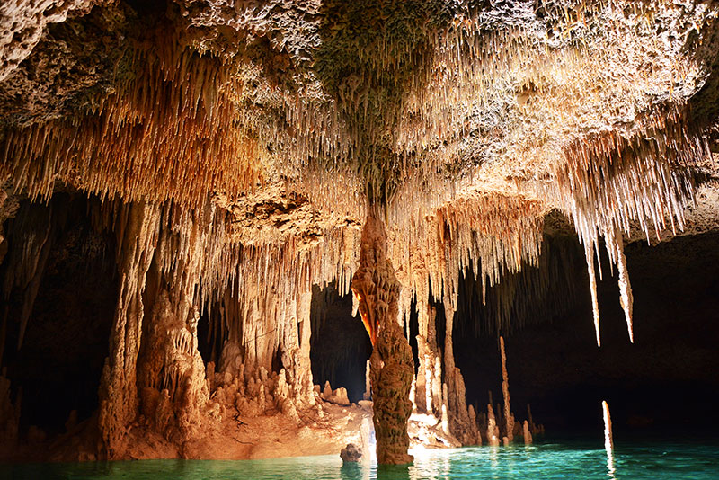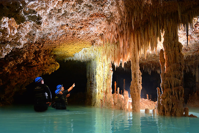 La visite guidée est obligatoire et en 2 :30 vous visiterai 2 grottes inondées et 1 grotte sèche : Pixan, Xibalba et Aluxes ou vous pourrez faire de la plongée en apnée tout comme de la marche avec une torche électrique, vous verrez une multitude de stalactites, stalagmites, poissons et offrandes en céramique.